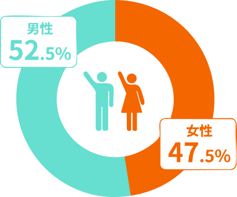 男女の比率に大きな違いがないため、男女ともにバランスよく相手を見つけることができます。
